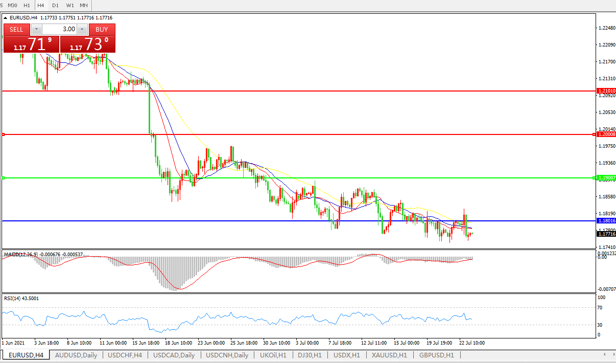 技术面简析:4小时图均线延续下行态势,汇价再度小幅走弱,MACD运行于0轴下但量能0轴下微缩量,RSI小幅走弱,预计短期汇价大概率将进一步下行。