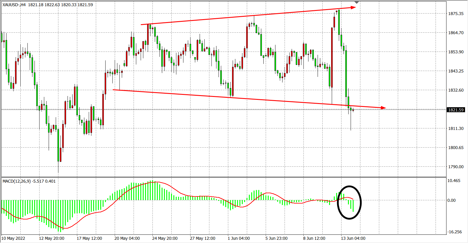 周一(6月13日)由于美国最新的通胀数据爆表,再度引发了市场对于美联储激进加息的猜想,华尔街日报称美联储考虑在本周加息75个基点,全球股市均出现不同程度的下挫,美元指数涨破105关口创20年来新高,美债收益率涨破3.4%,现货黄金日内大跌3%跌破1820美元/盎司。当前加息幅度可能超出预期,市场正在消化美联储更为激进的紧缩政策,后市金价仍将面临抛压