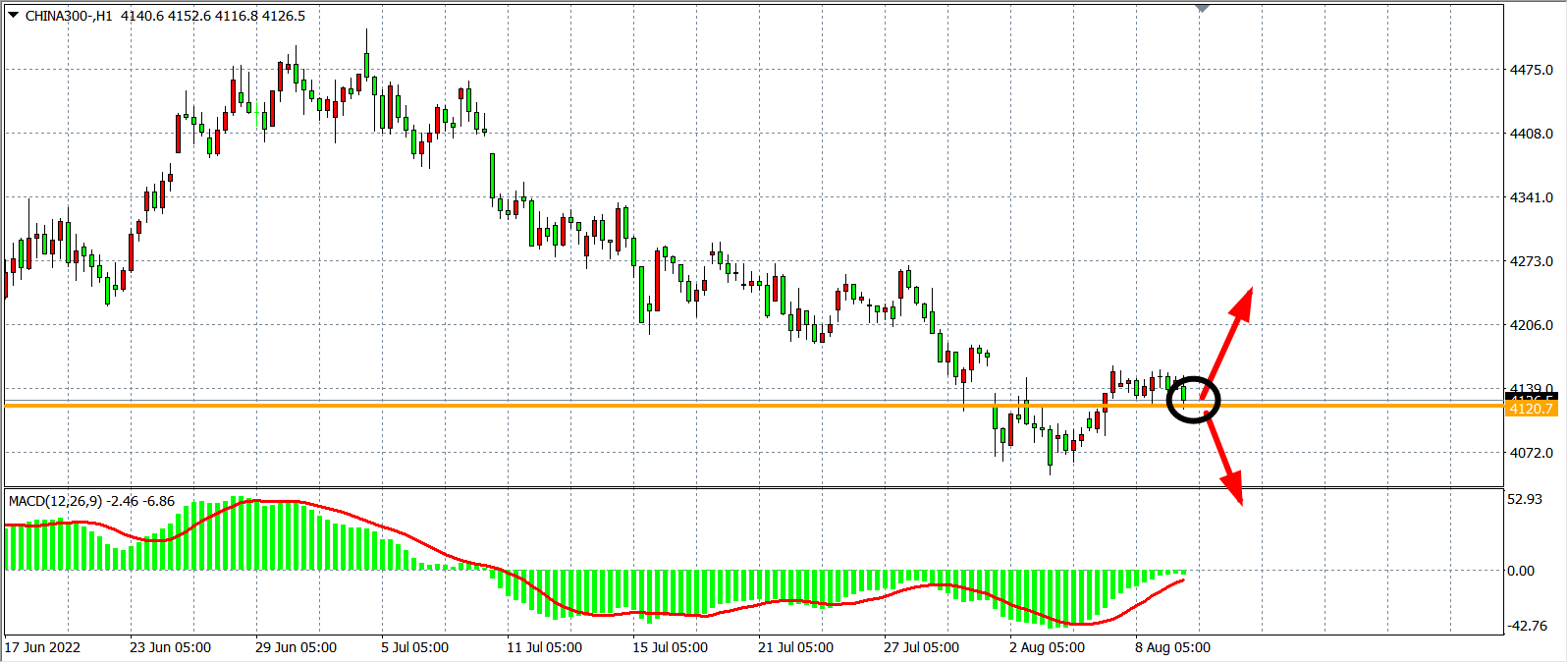 1小时图看,沪深300维持盘整震荡,在4120支撑之上运行,当前随着上贡乏力,多头动能可能会出现衰竭,但MACD于零轴之下量能缩短,显示行情仍待方向选择,日内继续关注支撑4120,在该位之上看反弹4200-4270,下破则看4070-4000