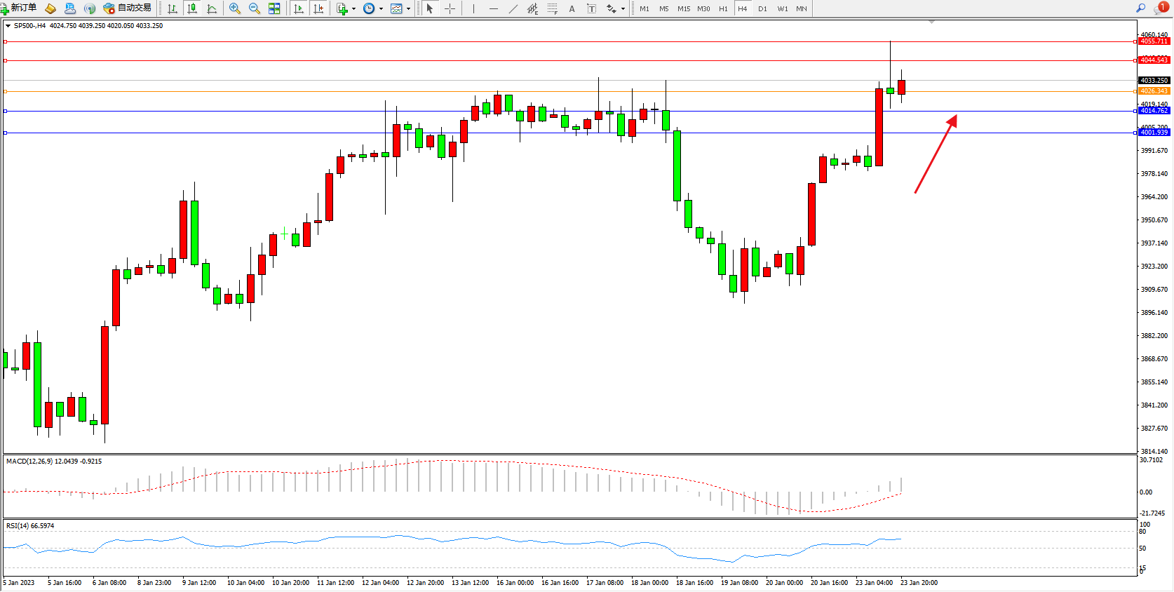 标普SP500——4小时K线图显示: