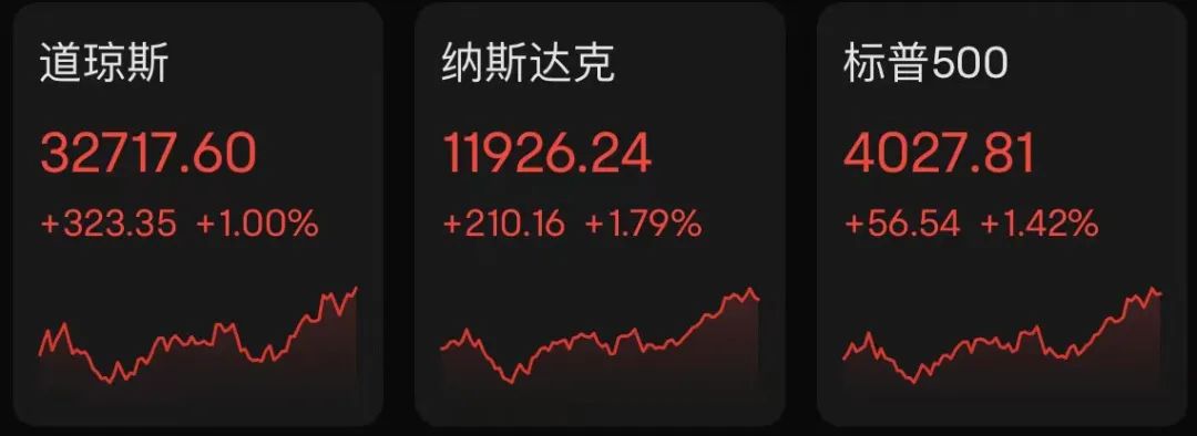 当地时间周三,欧美监管机构均表示要对银行业加强监管,或令市场担忧情绪有所好转。美股主要股指全线收涨,截至收盘,道琼斯指数收涨323.35点,涨幅1.00%,报32717.60点;标普500指数收涨56.54点,涨幅1.42%,报4027.81点;纳斯达克综合指数收涨210.16点,涨幅1.79%,报11926.24点。三大股指均收复3月10日硅谷银行倒闭以来跌幅。