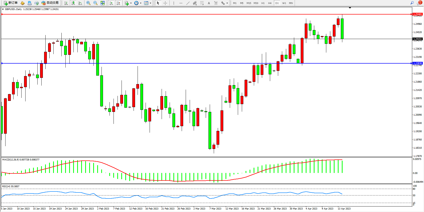 英镑兑美元日K线图