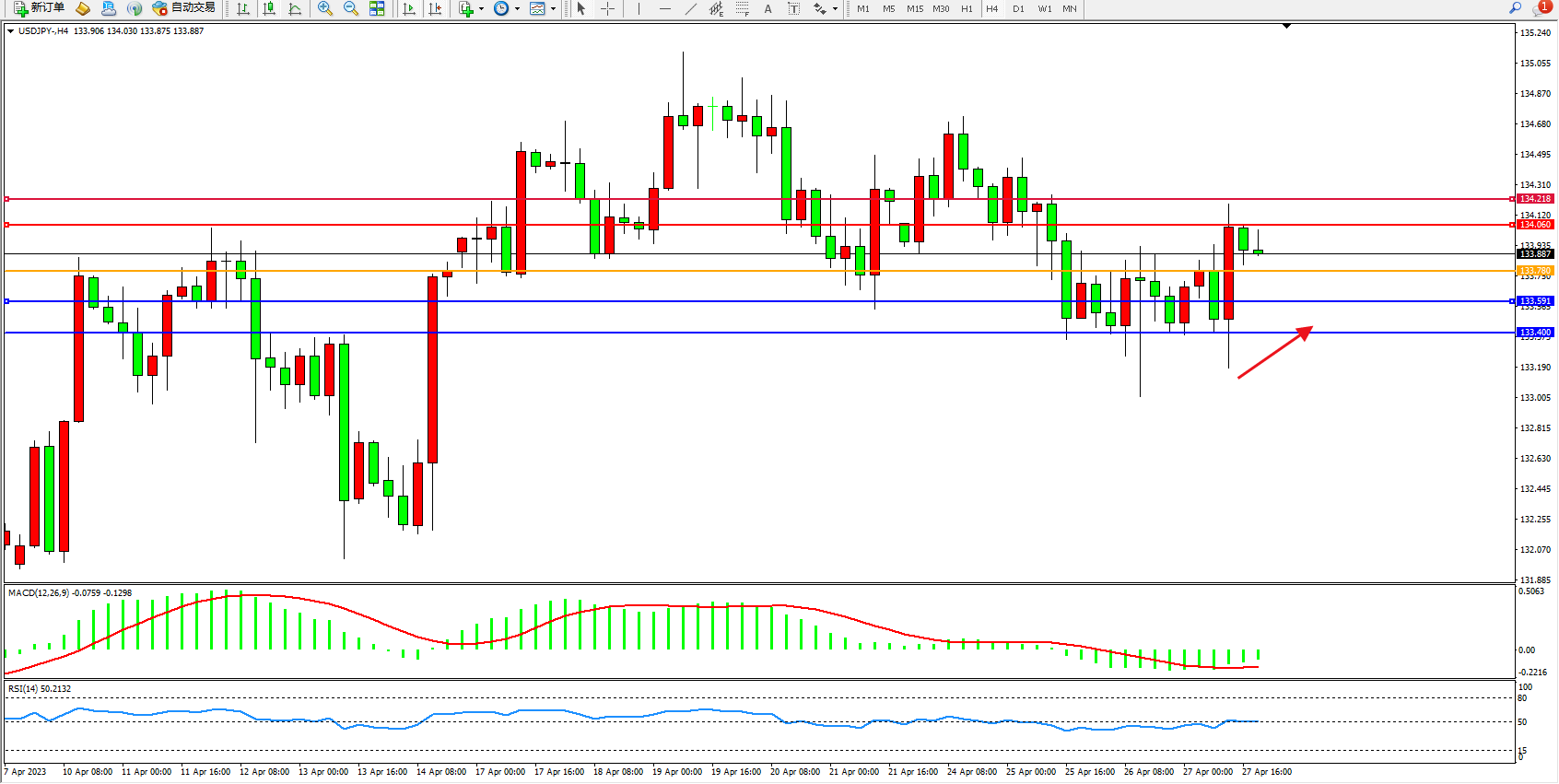 支撑位:133.591 133.400