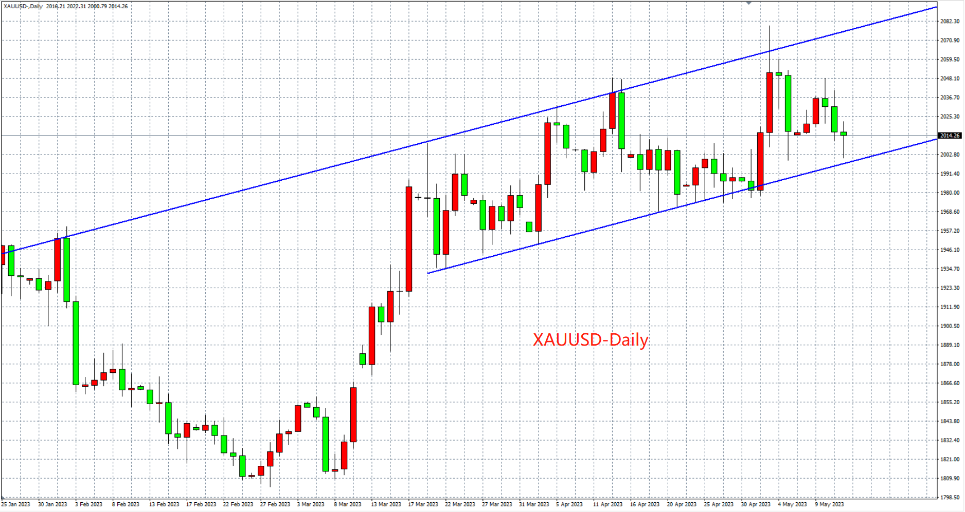 周五(5月12日)国债务上限危机和银行业压力仍存的担忧振了避险需求,现货黄金回弹2000关口后再度回升,最终日K线收出十字星。